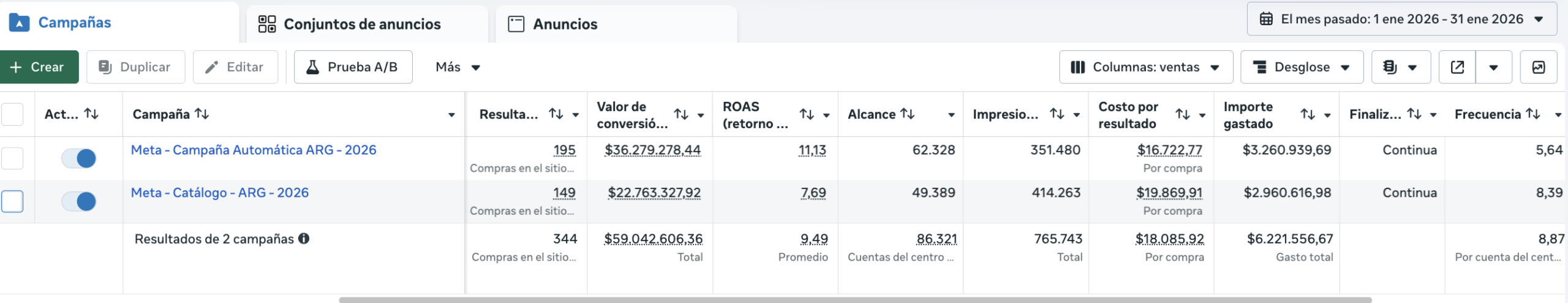 Campañas y anuncios