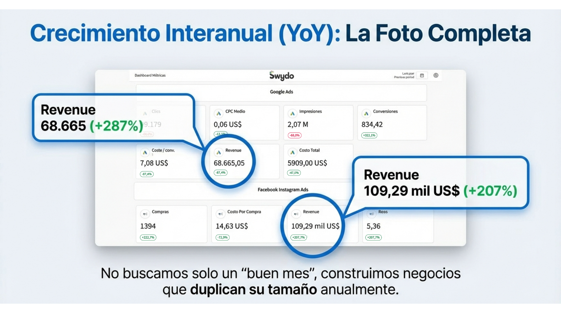 Establecemos objetivos claros y medibles, definiendo KPI’S que guían nuestras acciones para aumentar las ventas de tu negocio y así poder escalarlo.